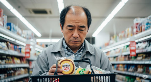黄金色の、ふっくらとした長方形。悪くない。子供の頃、特別な日にしか食べられなかった高級品のイメージが、まだキムかつの脳裏には焼き付いている。3割引とはいえ、体裁は保てるはずだ。それに、ケンジの嫁さん、確か甘いもの好きだったような…。誰に言い訳するでもなく、キムかつはカゴにカステラを放り込んだ。レジで支払いを済ませ、ビニール袋をぶら下げて夜道を歩く。古い実家の玄関を開けると、埃とカビの匂いが混じった、いつもの空気がキムかつを迎えた。